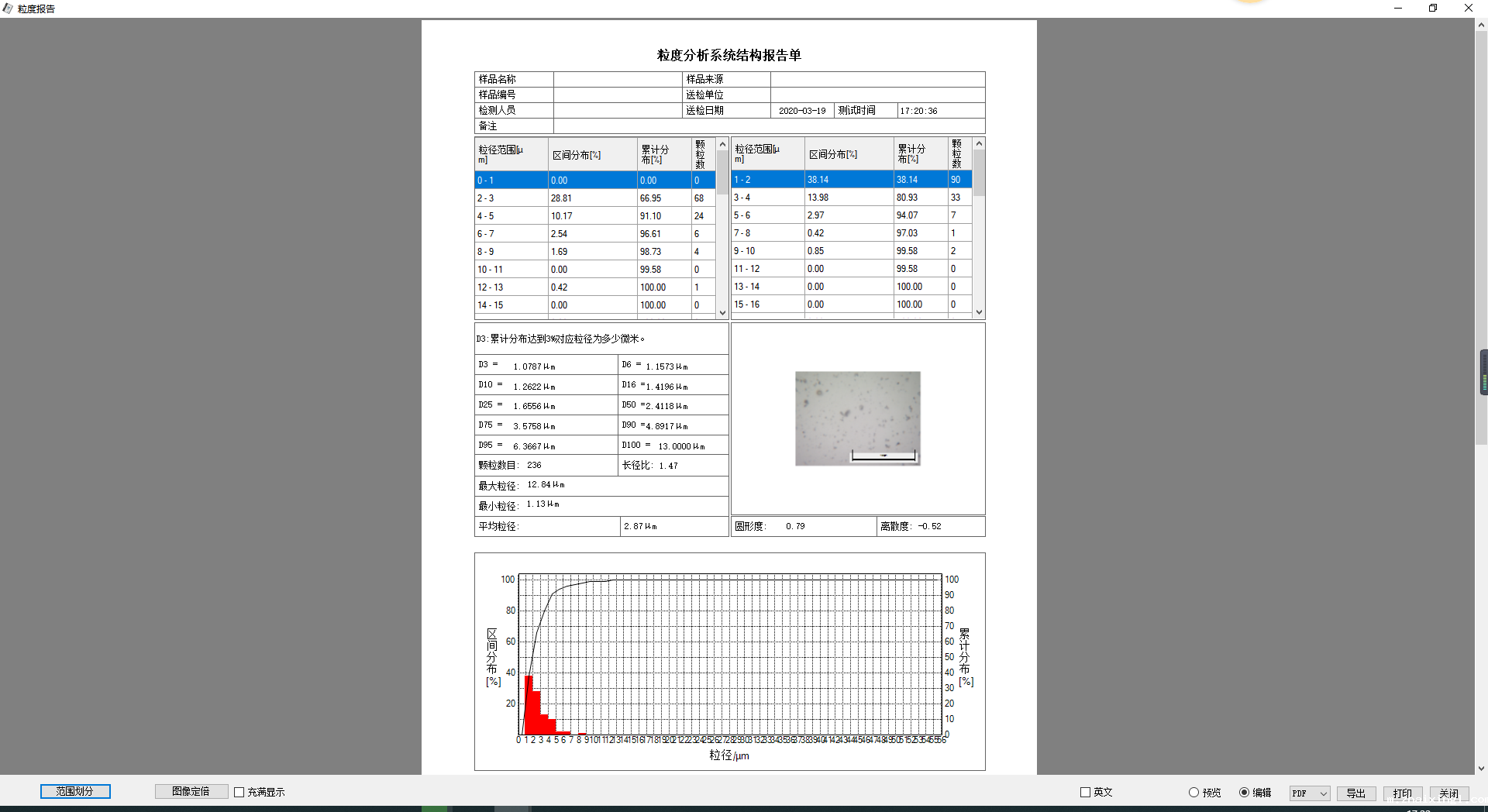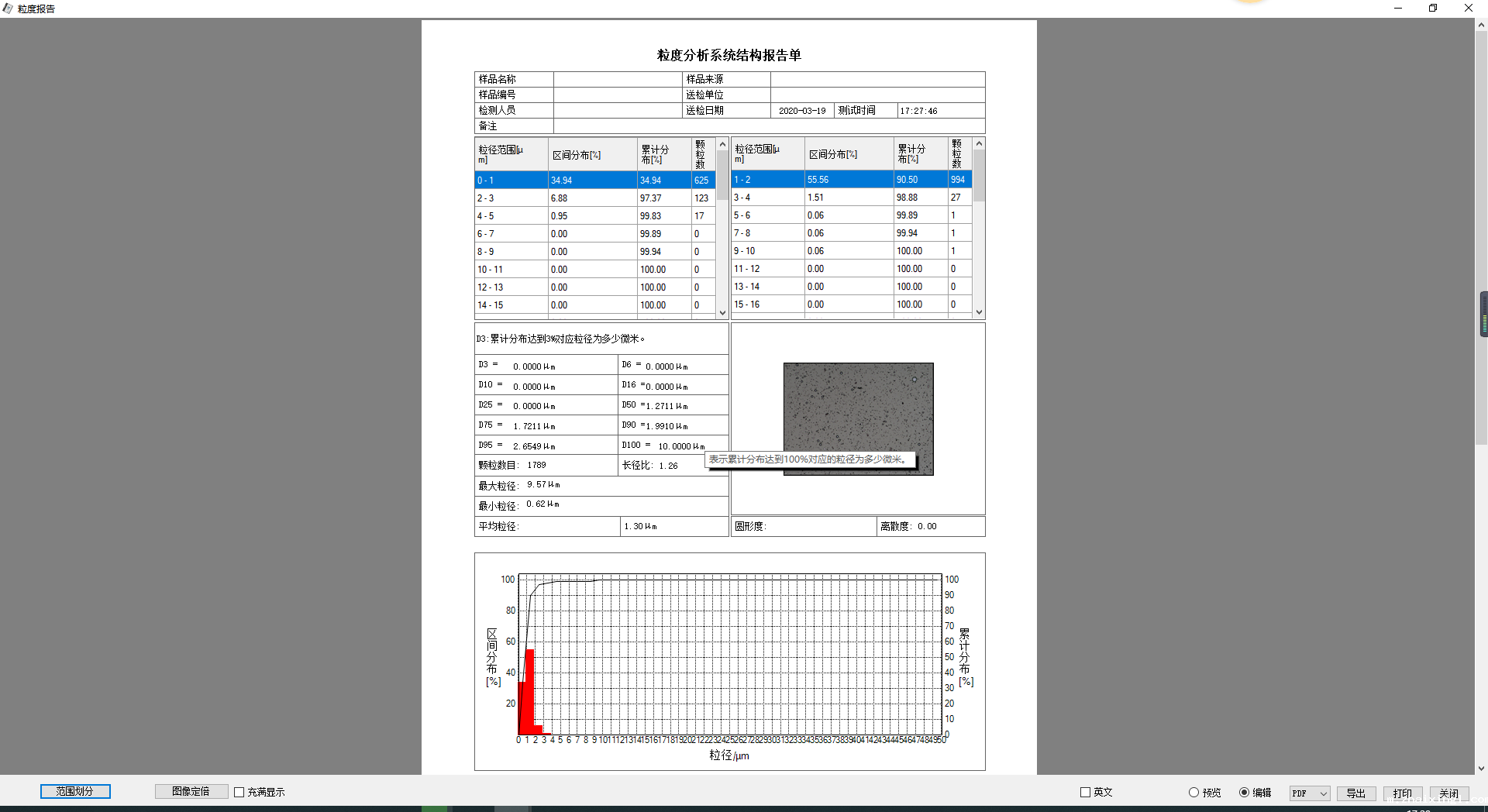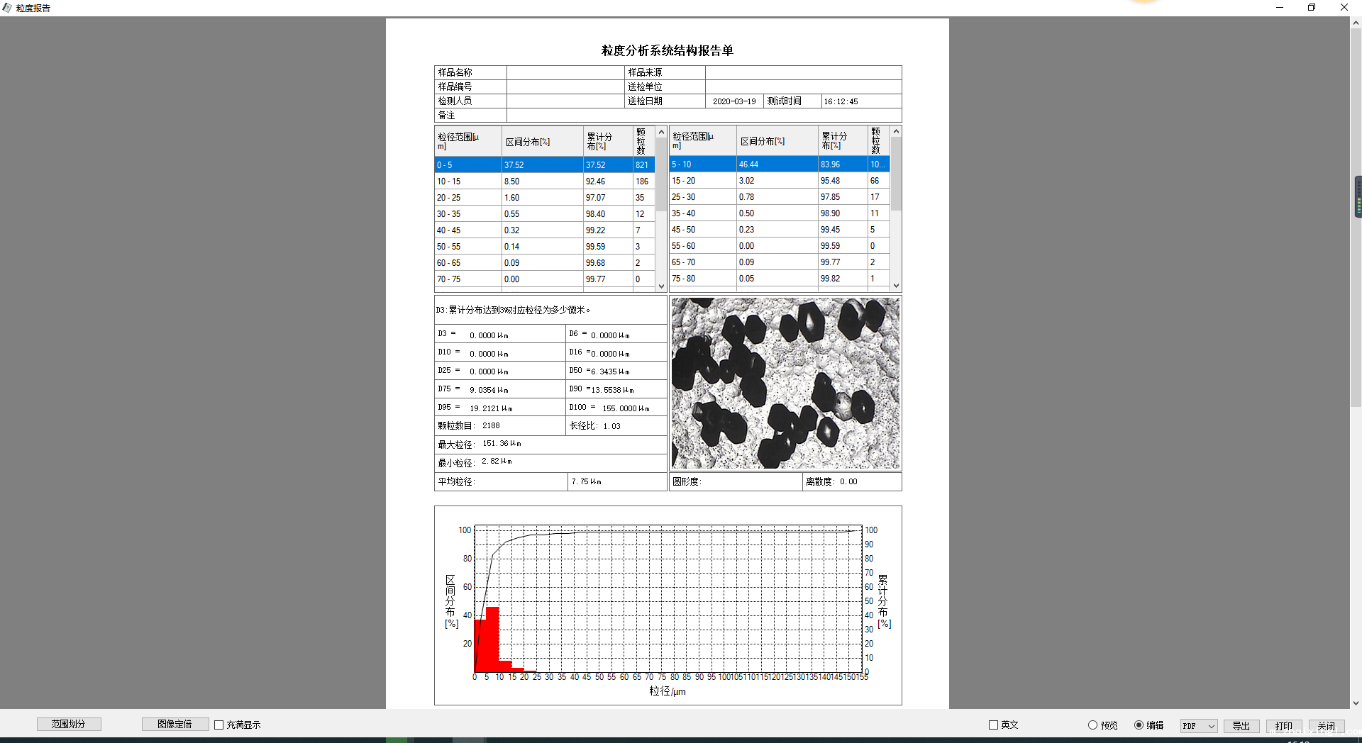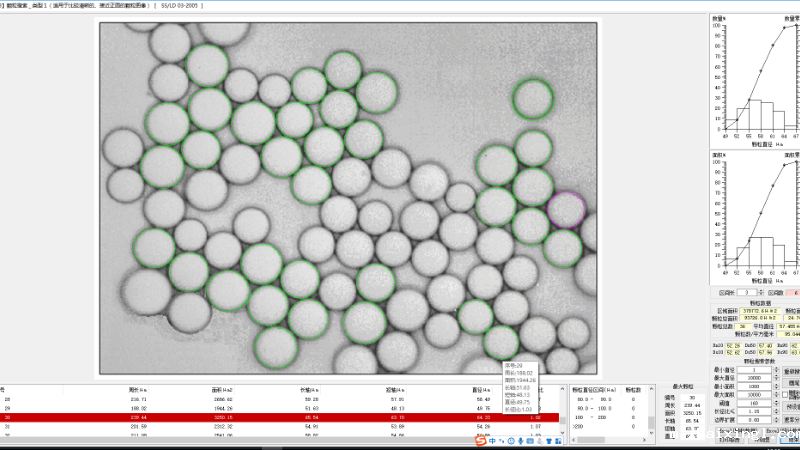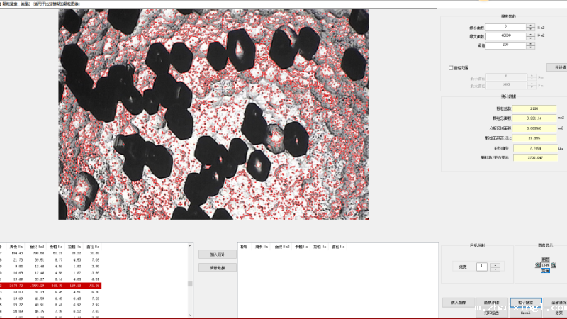 ³öÿ¸ö¿ÅÁ£µÄÖ±¾¶¡¢Öܳ¤¡¢Ãæ»ý£¬ÒÔ¼°ËùÓпÅÁ£µÄ¿ÅÁ£×ÜÊý¡¢ÏàÃæ»ý°Ù·Öº¬Á¿¡¢×î´ó¿ÅÁ£Ö±¾¶¡¢×îС¿ÅÁ£Ö±¾¶¡¢Æ½¾ù¿ÅÁ£Ö±¾¶µÈÊý¾Ý¡£