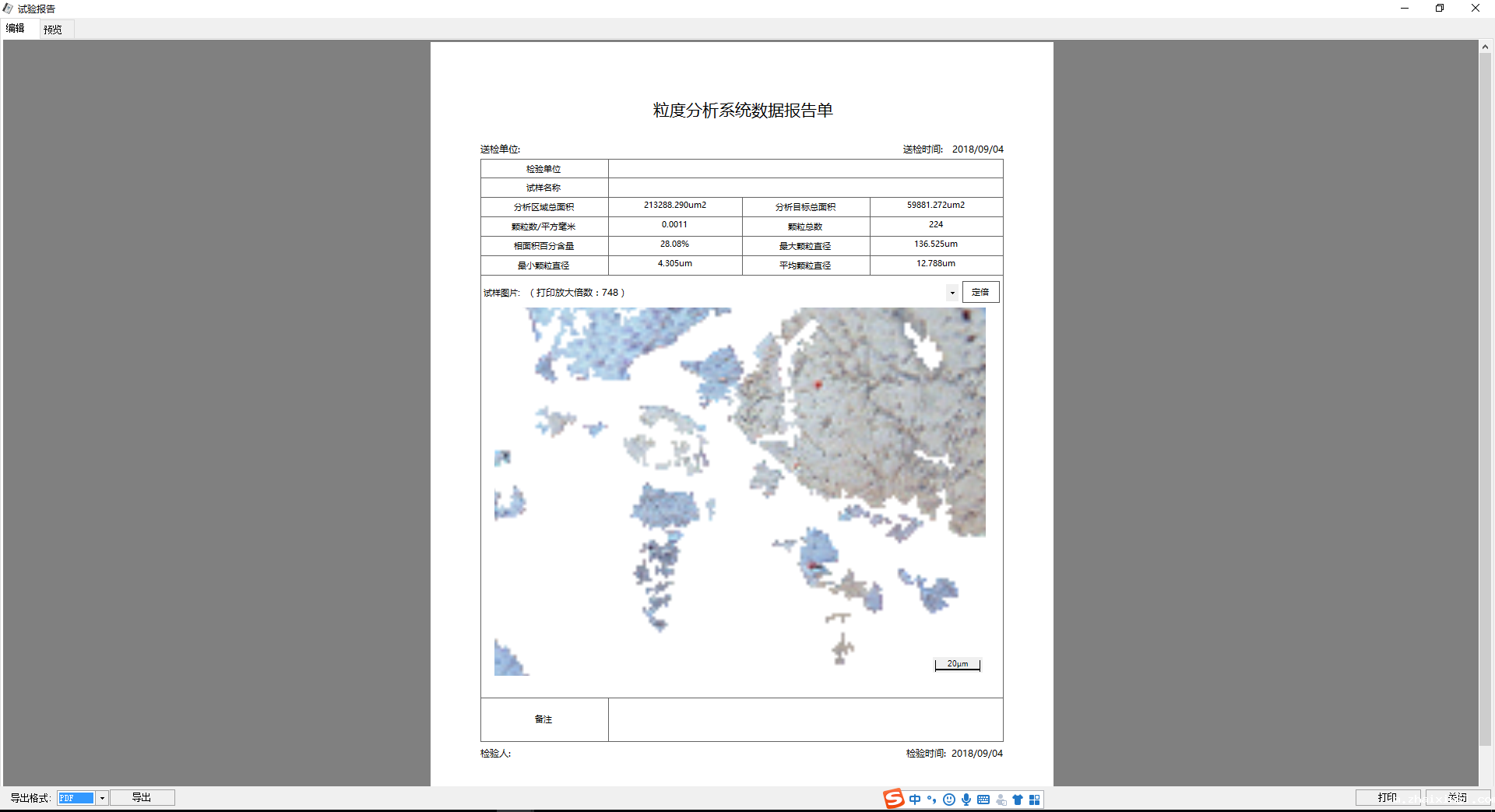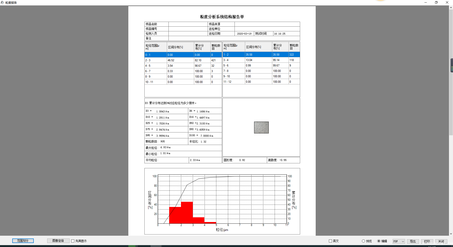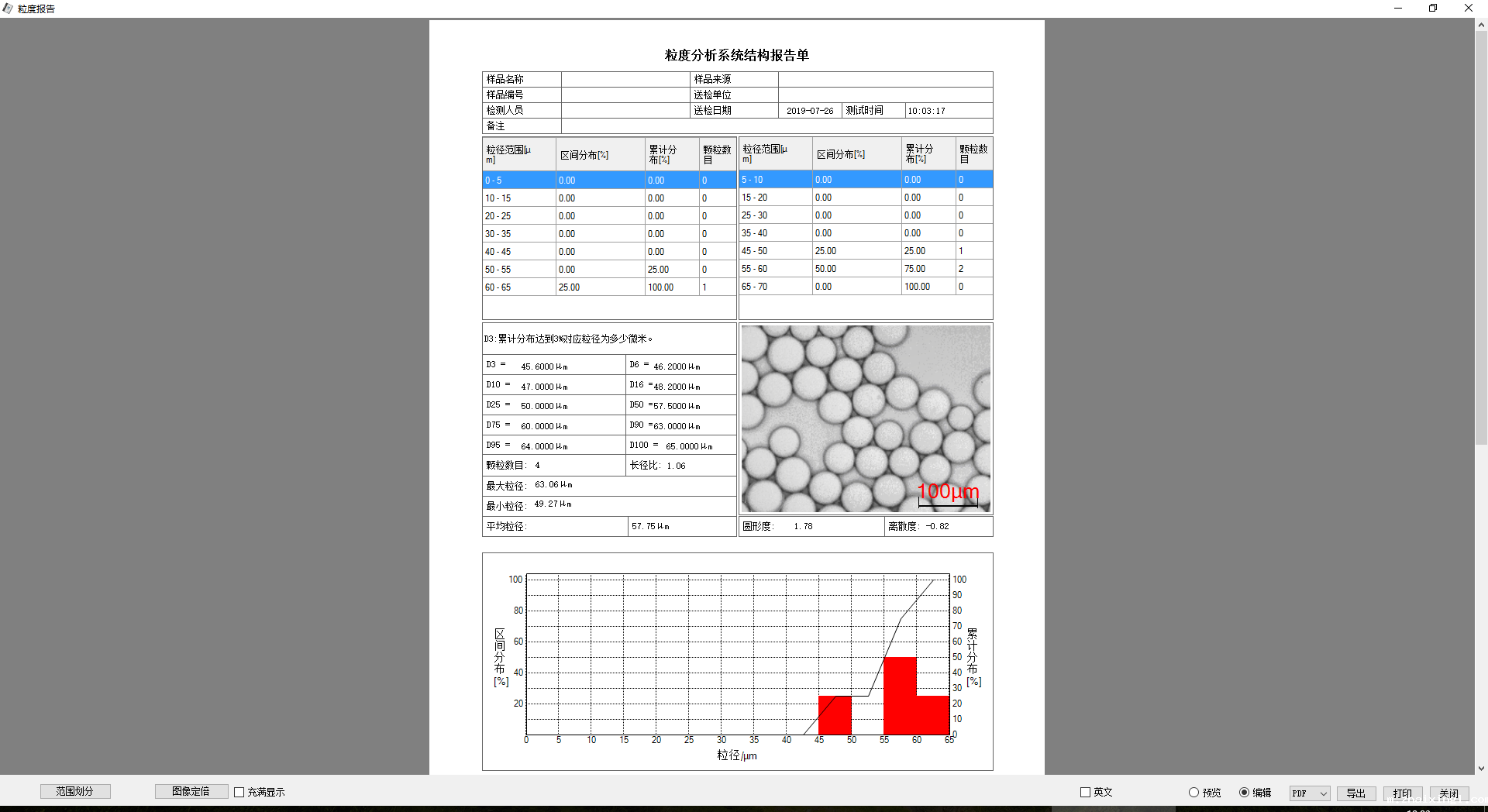 ³öÿ¸ö¿ÅÁ£µÄÖ±¾¶¡¢Öܳ¤¡¢Ãæ»ý£¬ÒÔ¼°ËùÓпÅÁ£µÄ¿ÅÁ£×ÜÊý¡¢ÏàÃæ»ý°Ù·Öº¬Á¿¡¢×î´ó¿ÅÁ£Ö±¾¶¡¢×îС¿ÅÁ£Ö±¾¶¡¢Æ½¾ù¿ÅÁ£Ö±¾¶µÈÊý¾Ý¡£