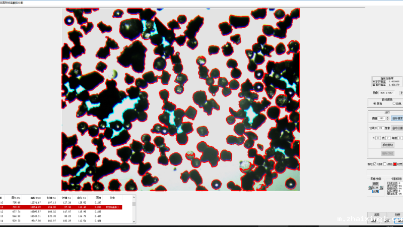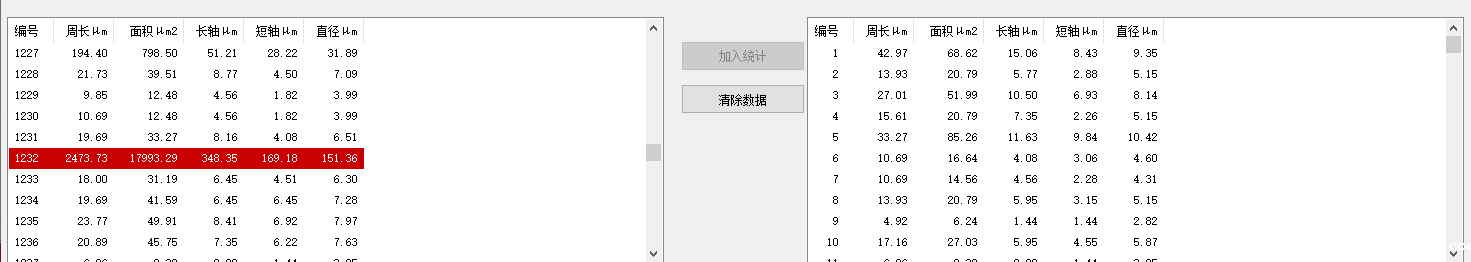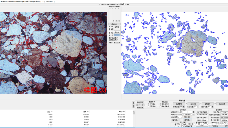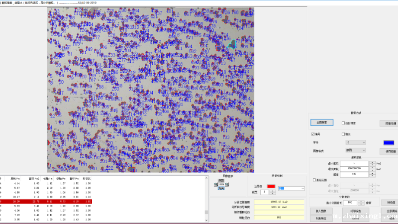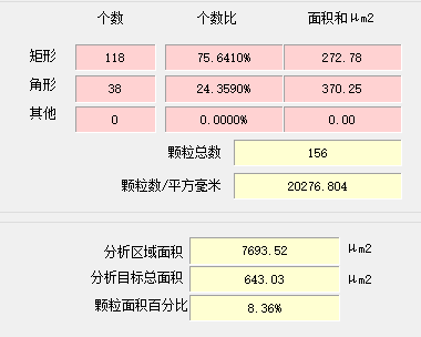 ³¤Öá¡¢¶ÌÖá¡¢Ö±¾¶¡¢ÐÎ×´±È£¬Í³¼Æ³ö·ÖÎöÄ¿±ê×ÜÃæ»ý¡¢±»Çиî¿ÅÁ£Êý¡¢¿ÅÁ£×ÜÊý¡£¿ÉÏÈÑ¡ÇøÔÙËÑË÷¡£