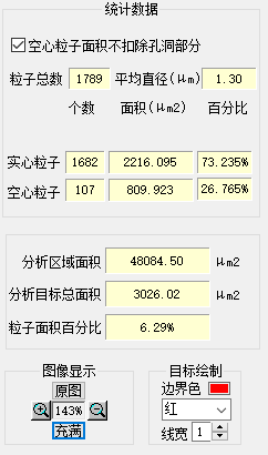 ͨ¹ýÊó±ê»Ïߵķ½Ê½£¬È¦³ö¿ÅÁ£ÂÖÀª£¬Ëã³öÿ¸ö¿ÅÁ£µÄ¿ÅÁ£Ö±¾¶¡¢Öܳ¤¡¢Ãæ»ý¡¢³¤Öá¡¢¶ÌÖᣬÒÔ¼°·ÖÎöÄ¿±ê×ÜÃæ»ý¡¢¿ÅÁ£×ÜÊý¡¢¿ÅÁ£Êý/ƽ·½ºÁÃס¢ÏàÃæ»ý°Ù·Öº¬Á¿£»¿É°ÑĿǰµÄ»æÖƹ¤×÷±£´æÎªÒ»¸öÎļþ£¬¸ÃÎļþÒ²¿ÉÔØÈëµ½Èí¼þÖУº