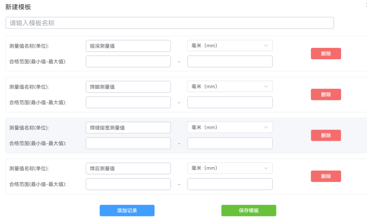 3¡¢¼ì²âÄ£°å×Ô¶¨Ò壻º¸·ìÈÛÉî¡¢º¸·ì¿í¶È¡¢º¸·ìÓà¸ß¡¢Æø¿×Ö±¾¶¡¢º¸½ÓÆø¿×£¬¼ÐÔüµÈÆóÒµ¿ÉÒÔ×Ô¶¨Òå¼ì²âÏîÄ¿£¬Í¬Ê±¿ÉÒÔÉèÖÃOK/NGÅжÏÖµ£¬ÐÐ³ÌÆóҵרÊôµÄ¼ì²âÄ£°å¡£