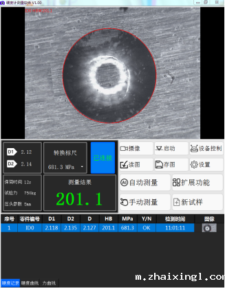 ÄÚÖÃCCDͼÏñ×Ô¶¯²âÁ¿ÏµÍ³, ²Ù×÷½çÃæÄ£¿é»¯Éè¼Æ£¬¿ÉÖ±¹ÛÏÔʾѹºÛÖ±¾¶£¬Ó²¶ÈÖµ¼°Ó²¶ÈÖµÇúÏߣ¬×ª»»±ê³ß£¬¼ì²âʱ¼äÒÔ¼°Í¼ÏñµÈÄÚÈÝ¡£ |
